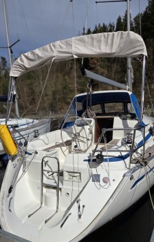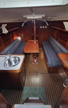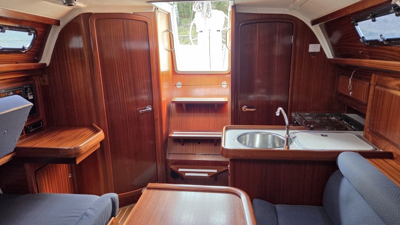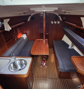 oddělené WC, plynový vařič, kompresorová lednice, zásuvka USB, dřez s tekoucí vodou, venkovní sprcha, stolek v kokpitu, hloubkoměr, bimini, badenplato