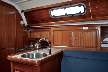 oddělené WC, plynový vařič, kompresorová lednice, zásuvka USB, dřez s tekoucí vodou, venkovní sprcha, stolek v kokpitu, hloubkoměr, bimini, badenplato